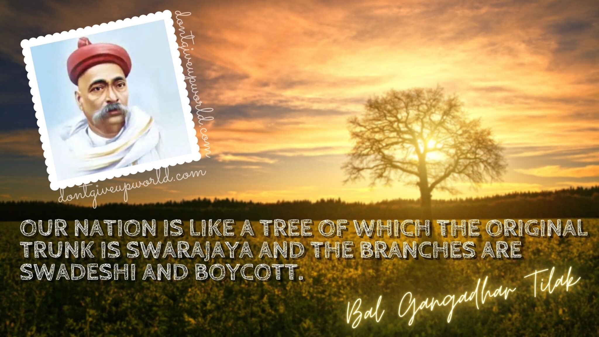 Hamara desh ek ped hai jiska tana swarajaya hai aur shakhayein swadeshi aur bahishkaar hai.