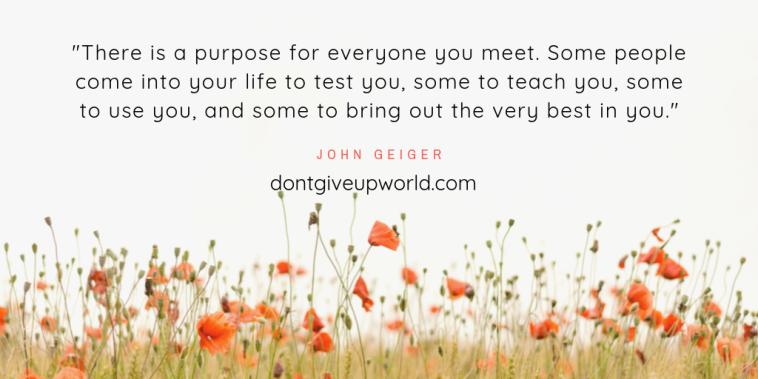 “There is a purpose for everyone you meet. Some people come into your life to test you, some to teach you, some to use you, and some to bring out the very best in you.” John Geiger