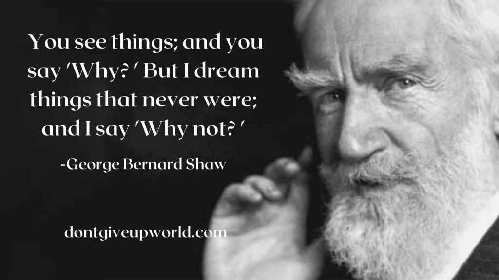 George Bernard Shaw’s quote, “You see things; and you say why? But I dream things that never were; and I say ‘Why not?’,” urges us to embrace a mindset of possibility and innovation. By asking ‘why not,’ we can dream bigger, overcome obstacles, and drive meaningful change in the world.